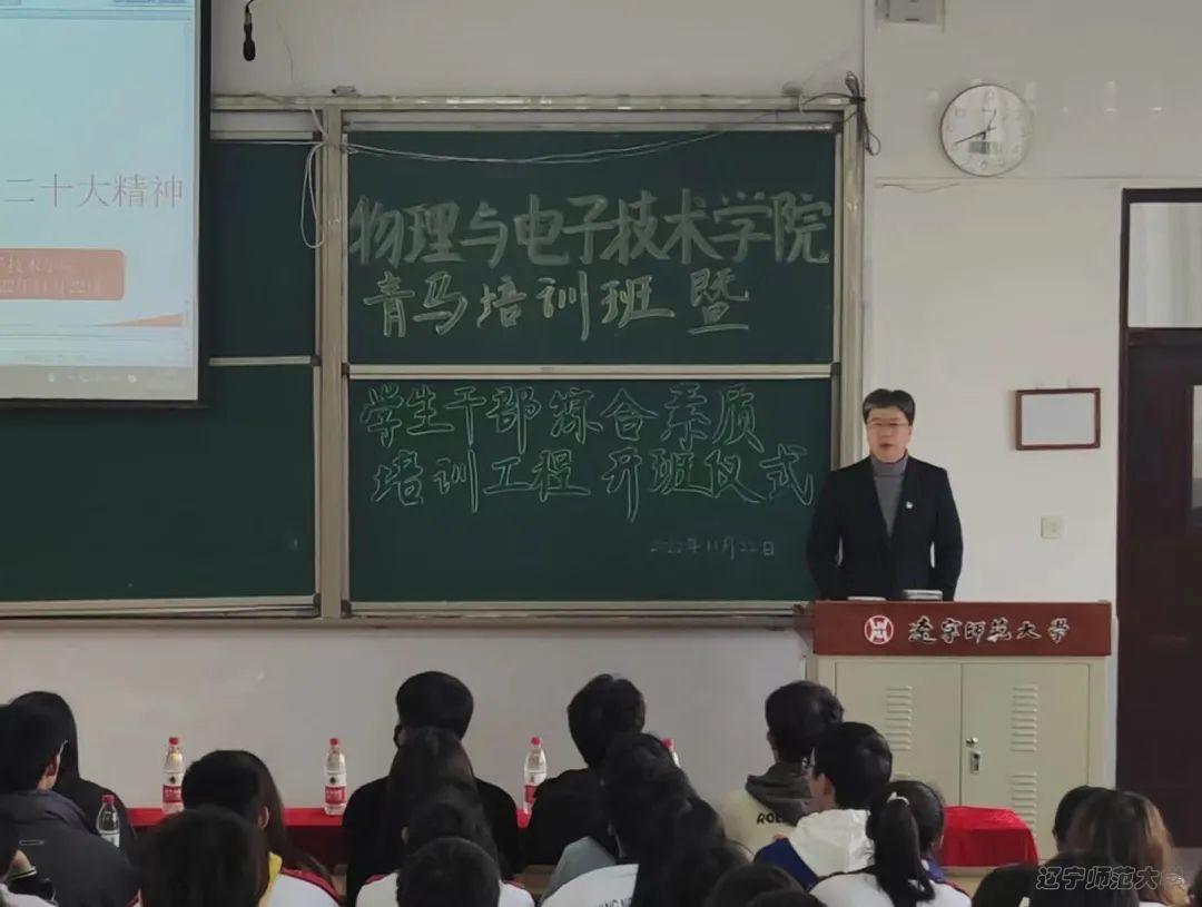 党委书记曲建辉老师进行青年马克思主义培训班开班第一讲。曲建辉老师分别从深入学习党的二十大精神的重要意义,党的二十大主题,过去五年工作和新时代十年伟大变革的重大意义等七个方面带领大家深入理解学习了党的二十大精神。并对全体学生干部提出要求,号召大家以实际行动坚定理想信念,传承红色基因,坚决做到“两个维护”;心系团员青年、树立服务意识,践行服务初心;坚持勤奋学习、积极开拓创新,提高工作能力;矢志艰苦奋斗,勇于担当奉献,锤炼优良作风。
