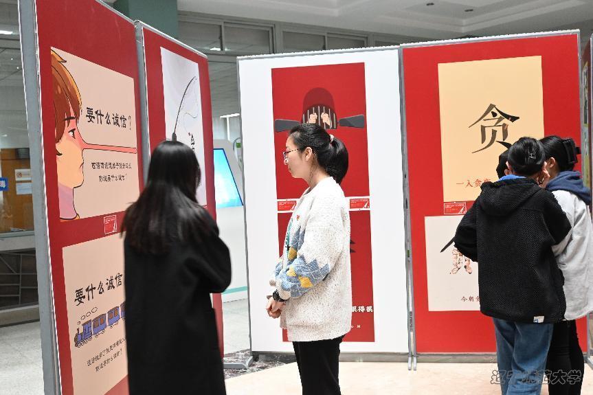 组织学生党员参观图书馆一楼廉洁文化主题艺术作品展,弘扬清廉守正、担当实干之风,推动廉洁文化建设走深走实。
